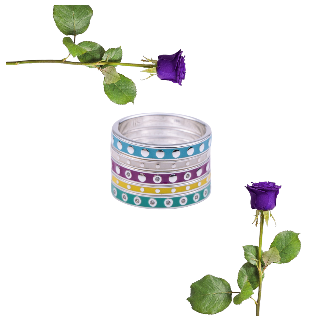 Латунь, покрытие серебром, обработка от потускнения, горячая ювелирная эмаль, вставки из кубического циркония