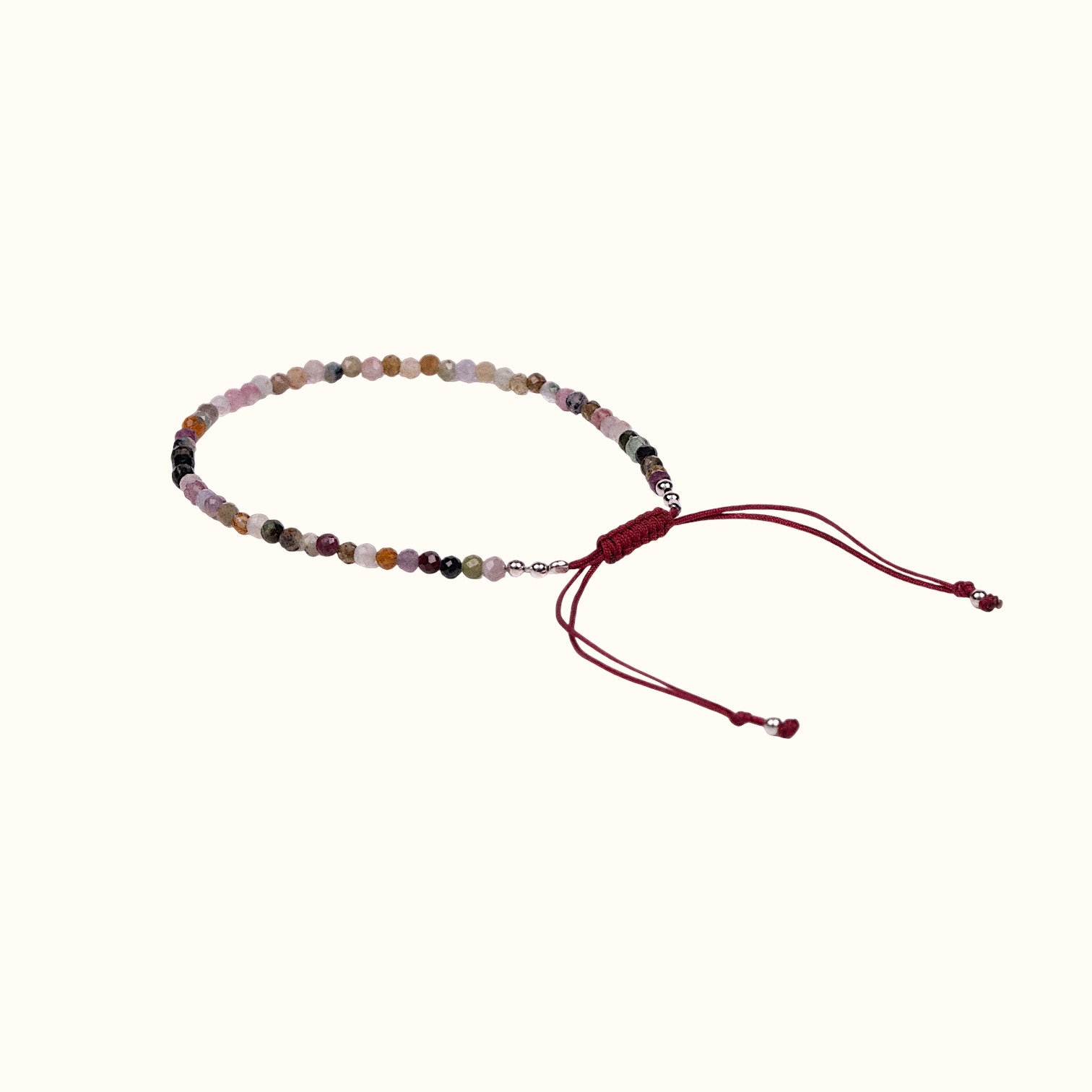 • Плетеный узкий браслет бордовый с элементами из серебра
