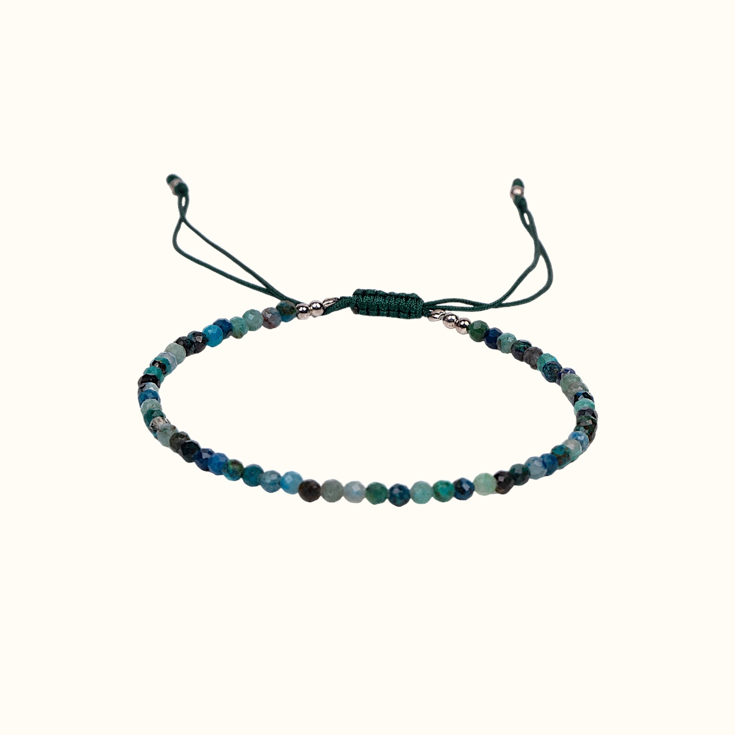 • Плетеный узкий браслет лазурный c элементами из серебра