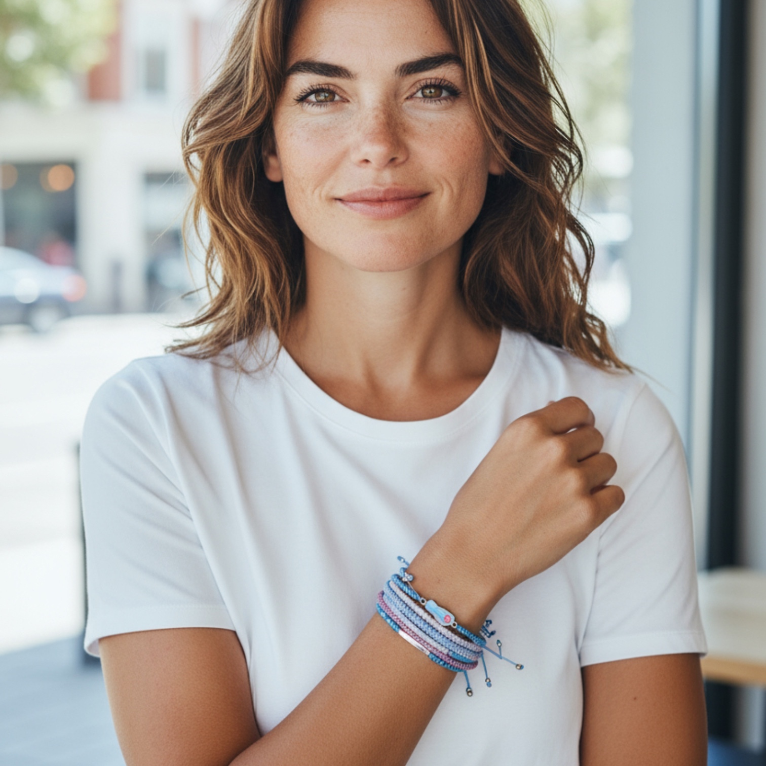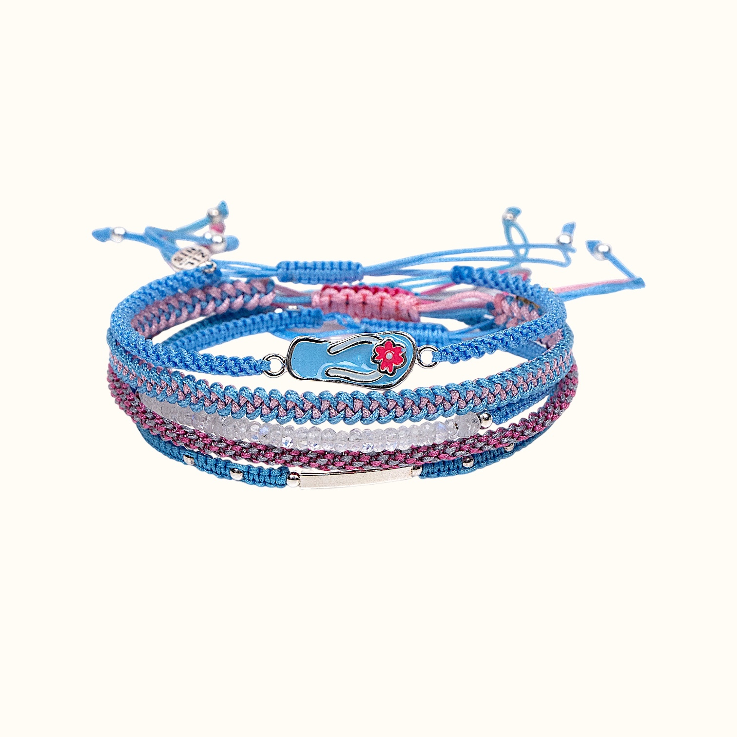 Сет плетеных браслетов "Ocean Breath" (Дыхание Океана) – вдохновлён красотой морской стихии. Лазурные и голубые оттенки, словно бескрайний океан, сливающийся с горизонтом, дарят ощущение свободы, спокойствия и безмятежности. Это воспоминания о тихом шёпоте волн, о нежном прикосновение морского бриза. Позвольте океану наполнить вашу душу гармонией и покоем.
