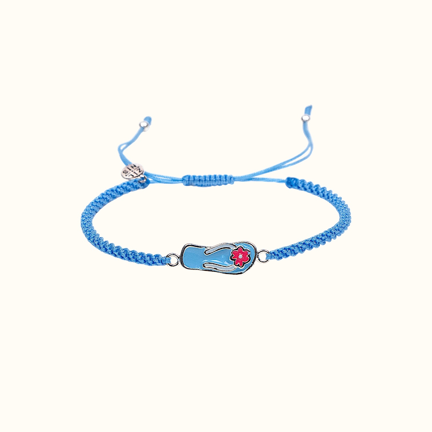 • Плетеный крученый браслет лазурно-голубой с эмалевым элементом в виде flip-flop