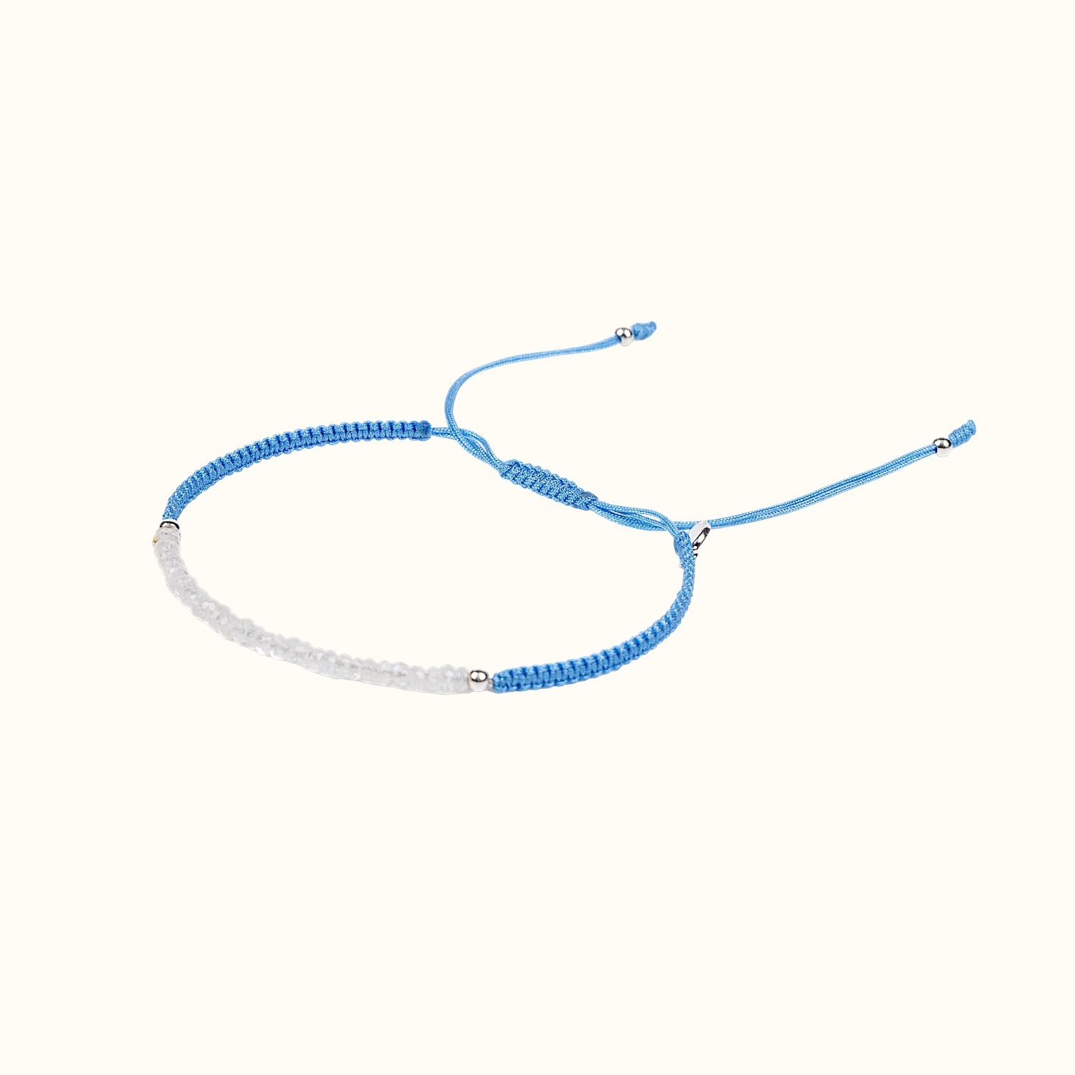 •  Плетеный узкий браслет лазурно-голубой с Лунным Камнем ( Moonstone)