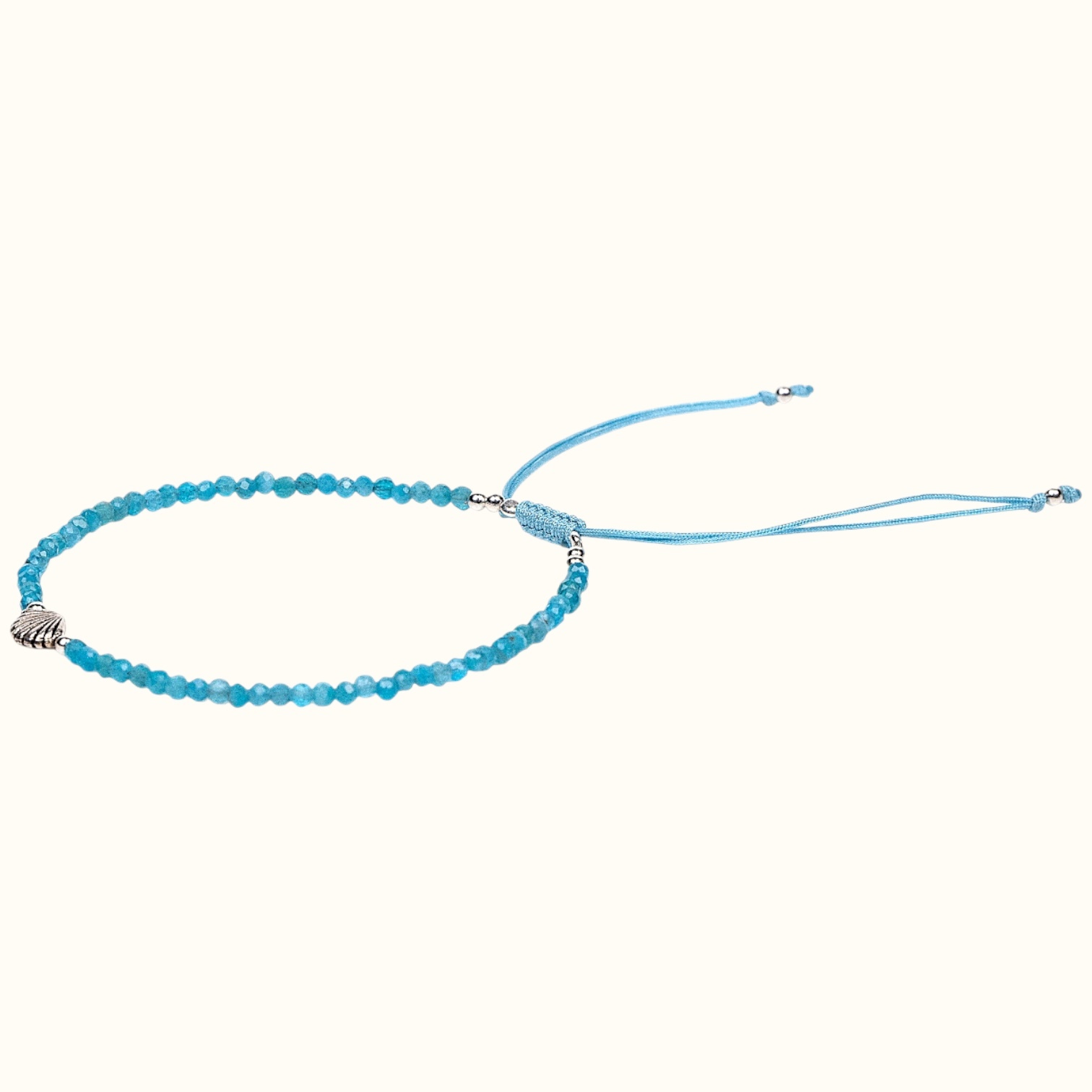 • Браслет из натурального камня  Голубой Апатит и с элементом из серебра в виде ракушки.