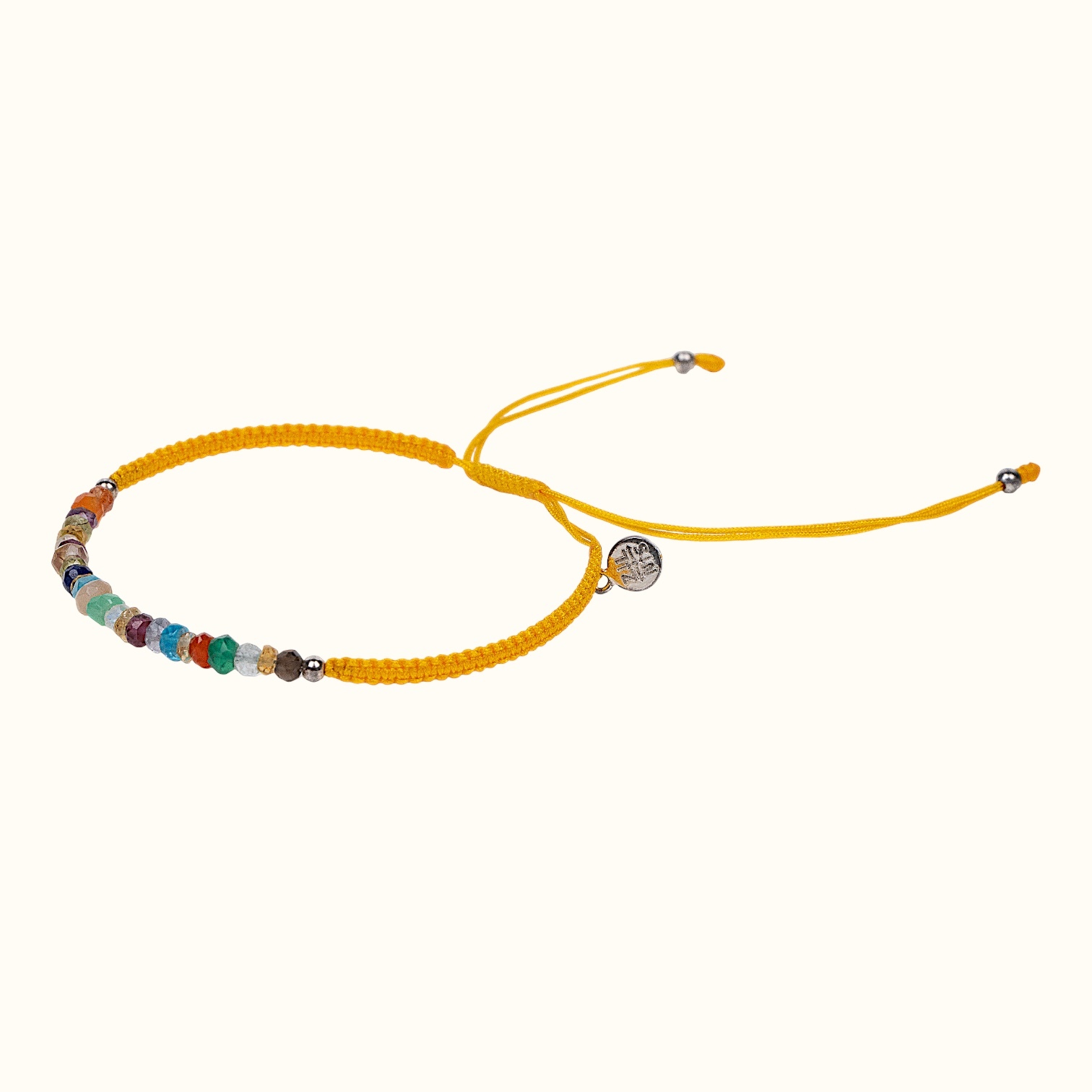 • Плетеный узкий браслет желтый с миксом натуральных камней