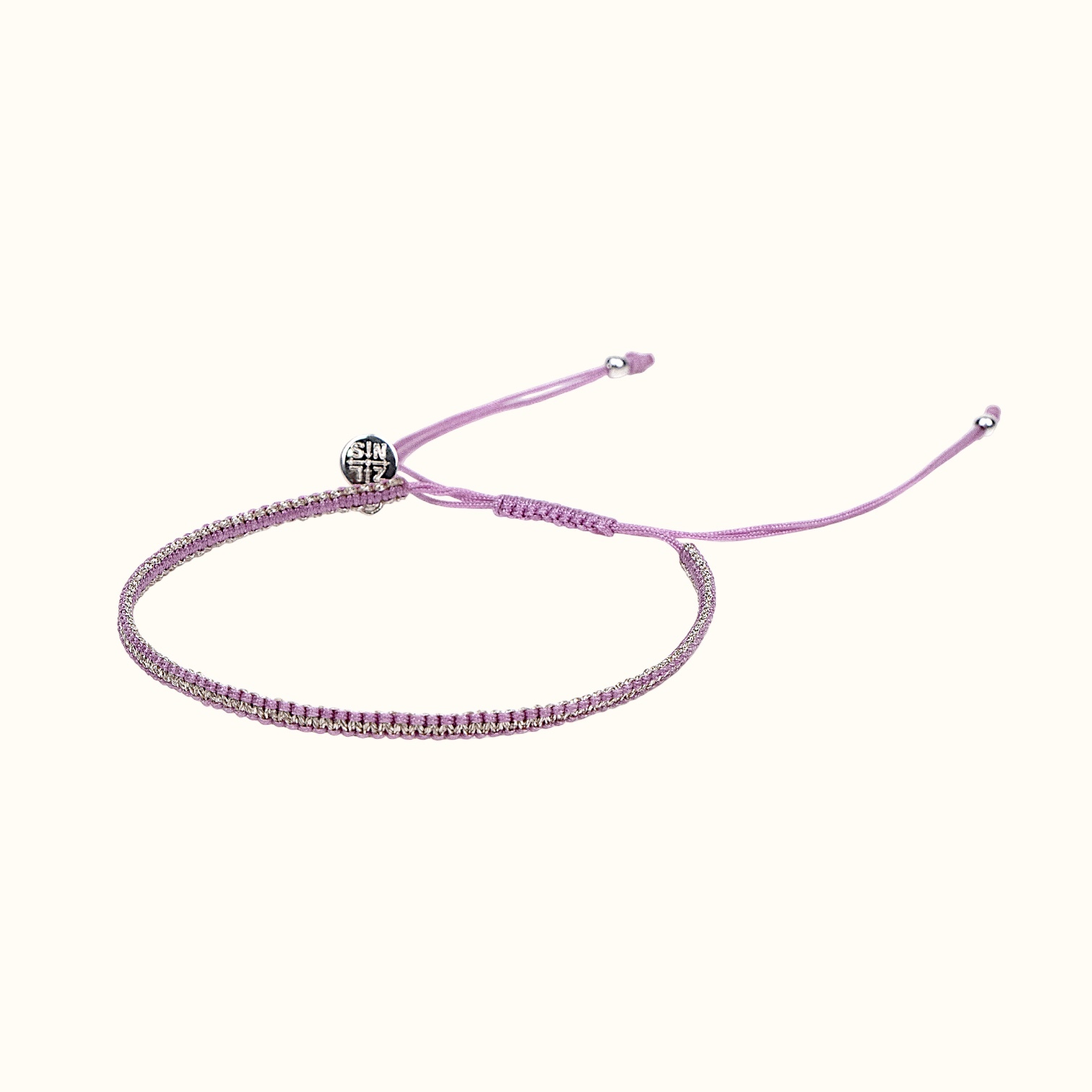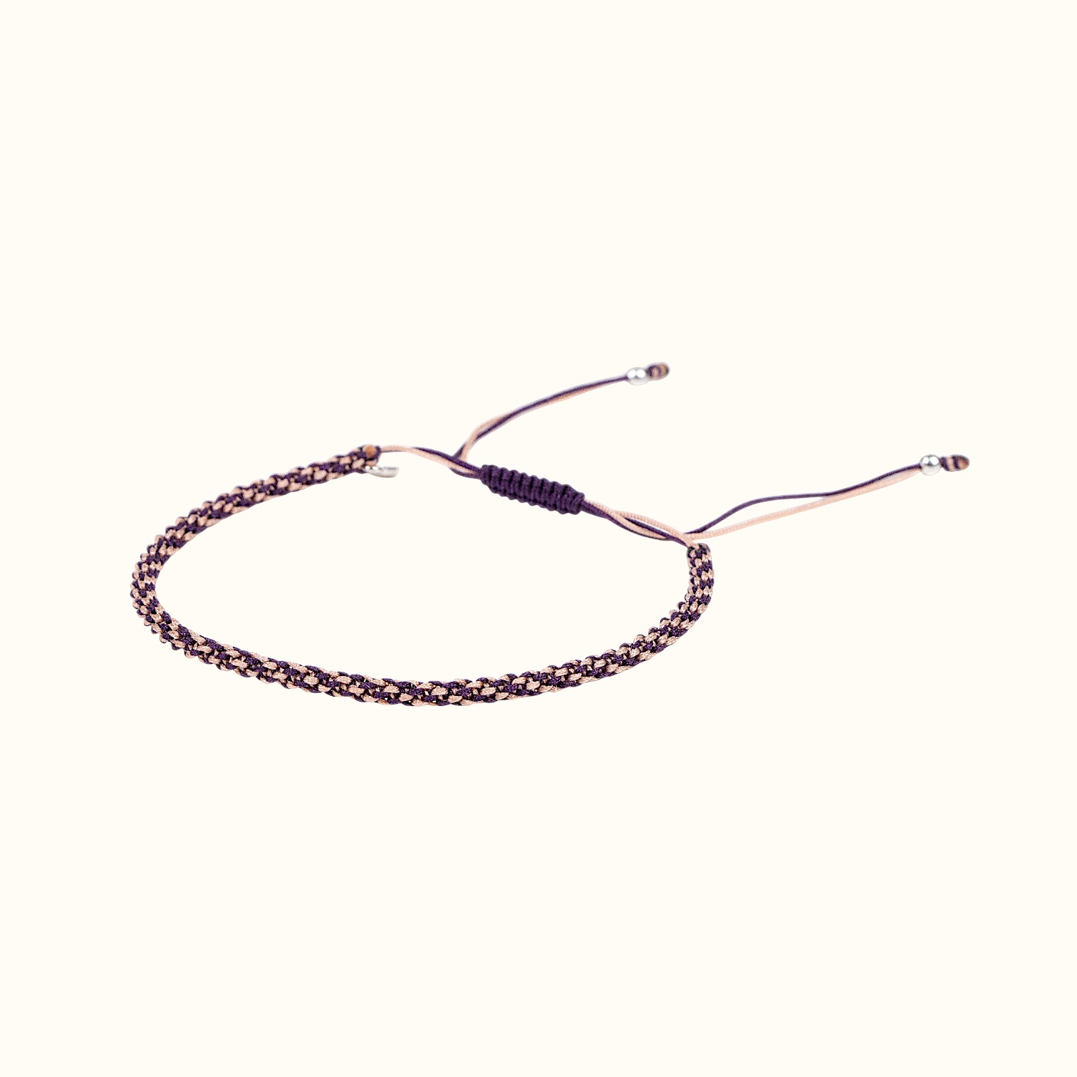 • Плетеный узкий браслет сиреневый с серебряной нитью