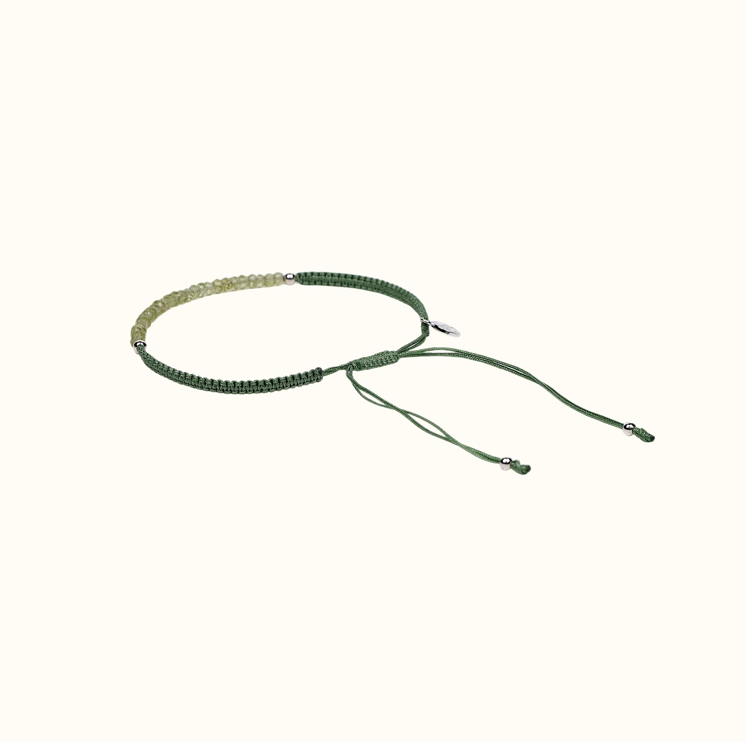 • Плетеный узкий браслет песочный с натуральными камнями Перидот