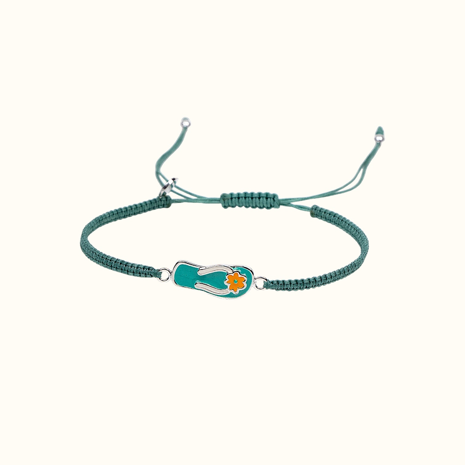 • Плетеный узкий браслет бирюзовый с эмалевым элементом в виде flip-flop бирюзовый