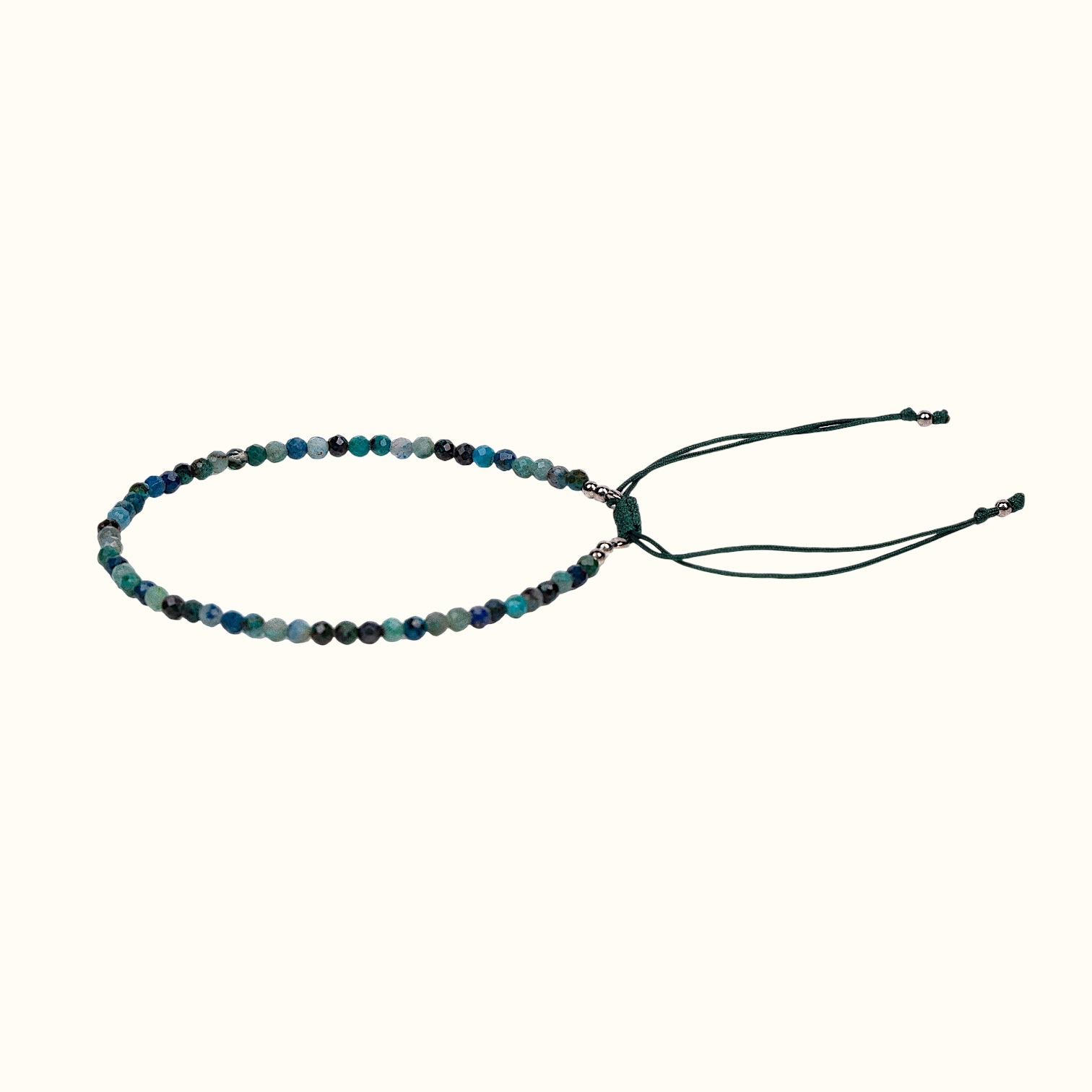 • Плетеный узкий браслет бирюзовый c элементами из серебра
