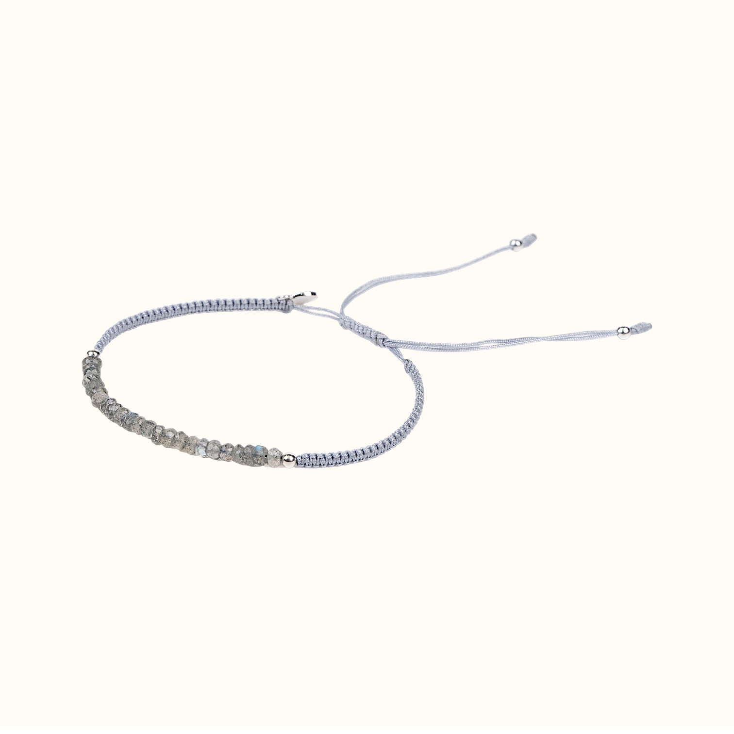 • Плетеный узкий браслет серый с натуральными камнями Лабрадорит